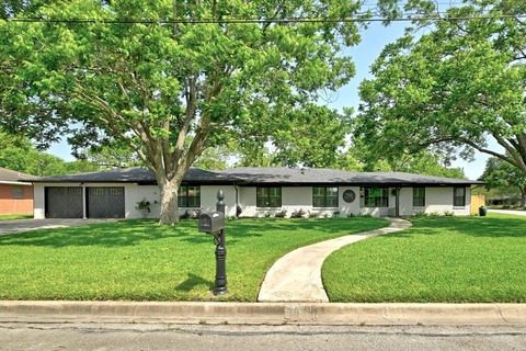 Meticulously maintained and thoughtfully updated, 701 Nixon sits on a spacious corner lot in the heart of Lockhart. The home features a flexible layout with multiple living areas, four large bedrooms including two primary suites, three full baths, and a dedicated office space/bonus room—ideal for both everyday living and entertaining. A gorgeous open kitchen includes granite counters, tons of cabinetry, stainless steel appliances, new kitchen stove, breakfast bar, and a kitchen island. A large secondary living area in the back of the home is perfect for gatherings with its own wet bar, built-in wine fridge, sink, and storage. The lush, landscaped backyard features an incredible covered back porch, six-person Aquaterra hot tub, 8-foot privacy fence, mature trees and updated sprinkler system. The detached outbuilding includes a potting shed and a finished gym with its own A/C unit and included weights. A second sidewalk entrance on Frio Street adds convenience for guests. Recent upgrades include plantation shutters, a custom front entry door with keypad, new roof and gutters (also extended to the shed and gym), and improved attic insulation and airflow. The HVAC systems have been regularly serviced, and the foundation was recently inspected and remains under warranty through 2029. 701 Nixon offers a well-balanced mix of thoughtful upgrades, indoor comfort, and inviting outdoor space—all in a great central location.